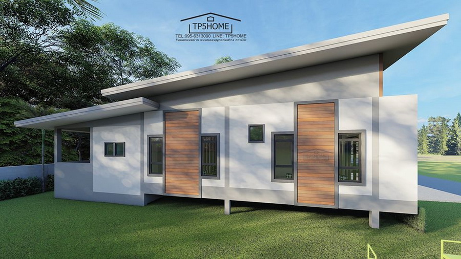 แบบบ้านหลังนี้เป็นบ้านหน้าแคบชั้นเดียว ออกแบบในสไตล์โมเดิร์น ตัวบ้านจึงให้ดีไซน์ที่ดูสวยงามทันสมัย ซึ่งโดดเด่นด้วยหลังคาเพิงหมาแหงนเล่นระดับ และกันสาดเล่นระดับเช่นเดียวกัน นอกจากนี้ยังเป้นบ้านที่มีพื้นที่ใช้สอยที่กว้างขวางทั้งภายในและภายนอกอีกด้วย