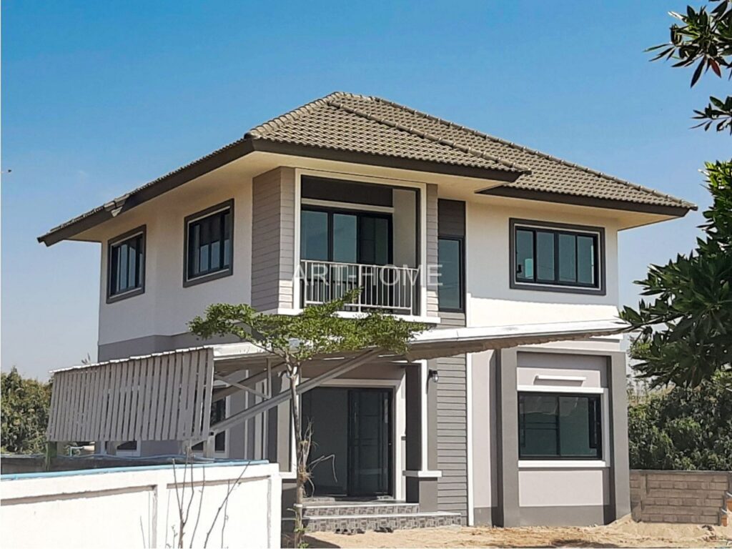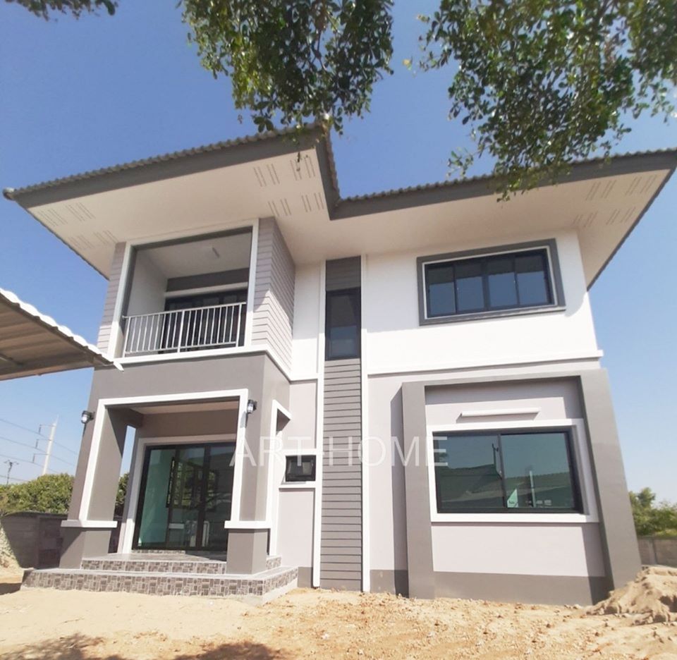 บ้านสองชั้นสไตล์คอนเทมโพรารี ผลงานก่อสร้างจากทีมงาน Art-HOME : รับสร้างบ้านตามงบประมาณ แบบบ้านสวยกลิ่นอายร่วมสมัย ภายนอกตกแต่งสีสันเรียบง่ายแต่มีเสน่ห์ ส่วนภายในเน้นความโปร่งโล่ง เรียบหรู พื้นที่ดูสว่างไสว น่าอยู่อาศัยทุกมุม