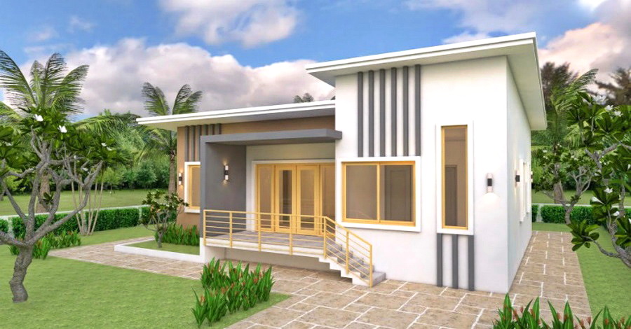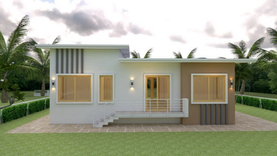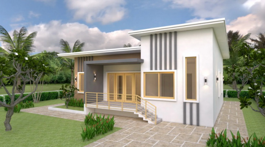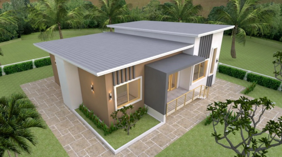 แบบบ้านหลังนี้เป็นบ้านหน้ากว้างยกพื้นสูงในสไตล์แบบโมเดิร์น หลังคาดีไซน์ผสมผสานทรงเพิงหมาแหงนและแบบเรียบ ด้านการตกแต่งนั้น ผนังภายนอกเลือกใช้โทนสีขาวยืนพื้น เพิ่มดีเทลด้วยสีเทาและสีน้ำตาล ทำให้บ้านมีรายละเอียดที่สวยงาม