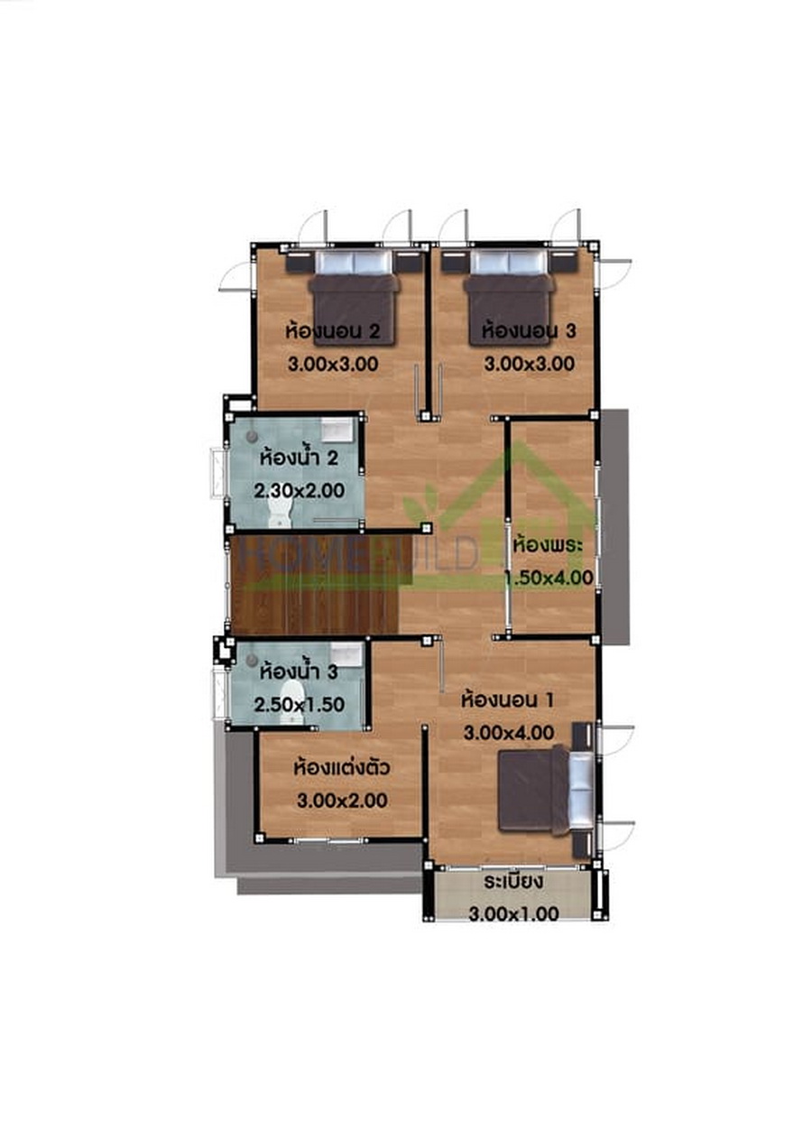 แบบบ้านสองชั้นสไตล์โมเดิร์นหลังนี้ประกอบไปด้วย 3 ห้องนอน 3 ห้องน้ำ 1 ห้องโถงนั่งเล่น 1 ห้องครัว 1 ห้องพระ ที่จอดรถ 1 คัน พื้นที่ใช้สอยทั้งหมดประมาณ 149 ตารางเมตร งบก่อสร้างอยู่ที่ประมาณ 1.8 ล้านบาท