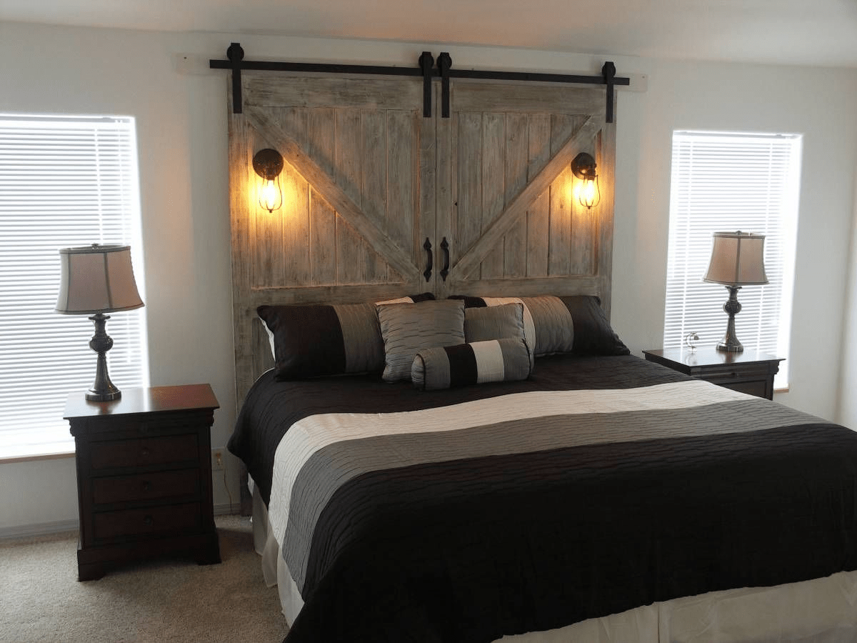 การตกแต่งแนวนี้จะใช้องค์ประกอบรีไซเคิลมาตกแต่ง เช่น ไอเดียนี้ที่ใช้ประตูของโรงหน้าแบบสวยดิบมาใช้ตกแต่งหัวเตียง