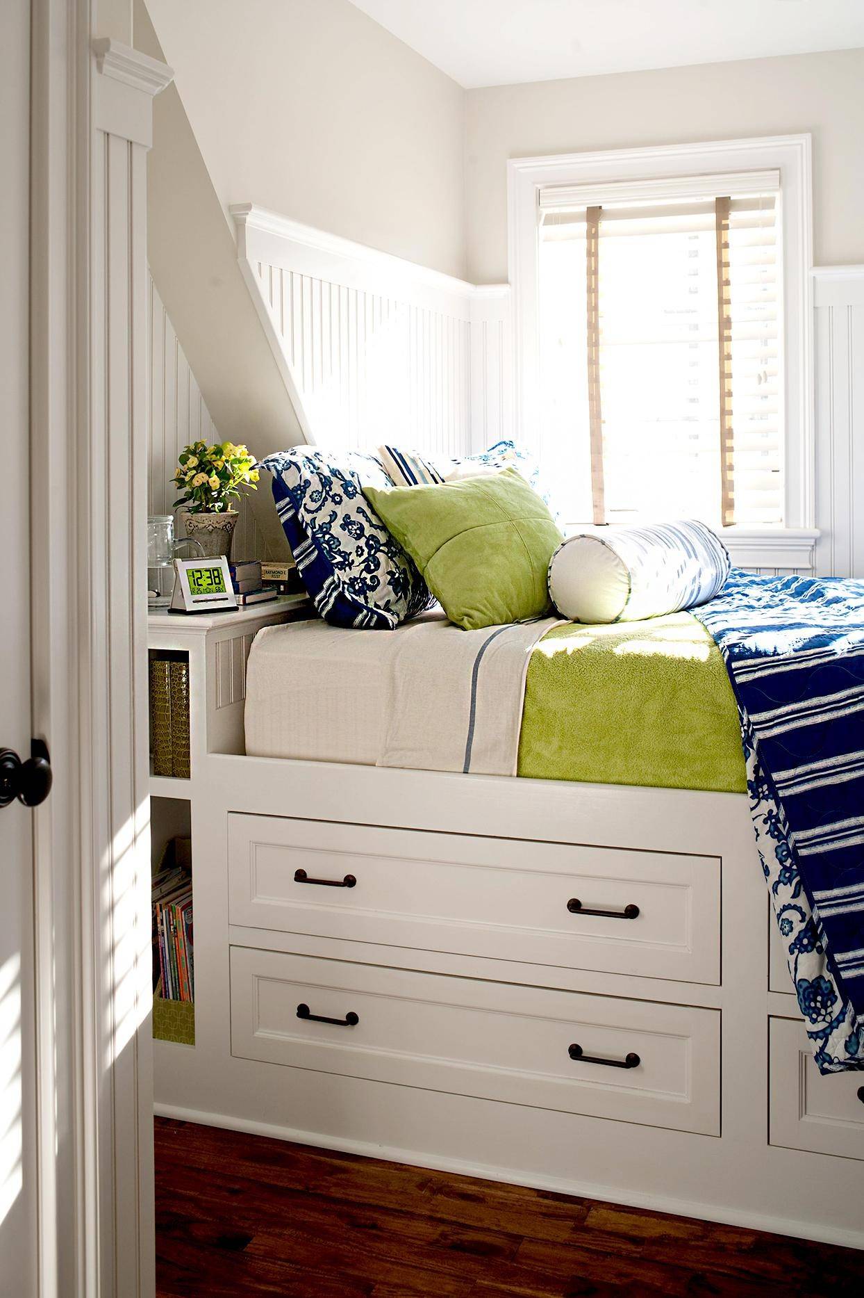จริง ๆ แล้วไอเดียนี้ก็จะเหมือนกับหัวเตียงที่เก็บหนังสือ เพียงแต่เปลี่ยนมาเป็นการเก็บข้าวของอื่น ๆ ซึ่งก็เหมาะกับเด็ก ๆ ที่มีของเล่น หรือของจุกจิกเยอะ ๆ