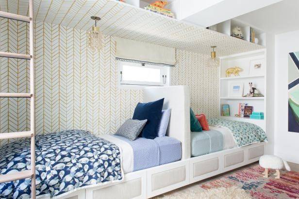 หัวเตียงแบบนี้จริง ๆ แล้วก็ไม่ได้เป็นการตกแต่งอะไรมาก แต่จะโดดเด่นตรงที่เป็นเตียงแฝดสองเตียงหัวเข้าหากัน ซึ่งเป็นการออกแบบที่เหมาะกับเตียงขนาดเล็ก