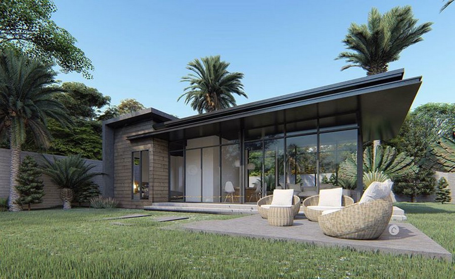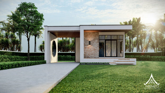 9. แบบบ้านชั้นเดียวทรงหน้ากว้าง สไตล์มินิมอล ตอบโจทย์ไลฟ์สไตล์คนรุ่นใหม่ 1 ห้องนอน 1 ห้องน้ำ พื้นที่ 75 ตร.ม.