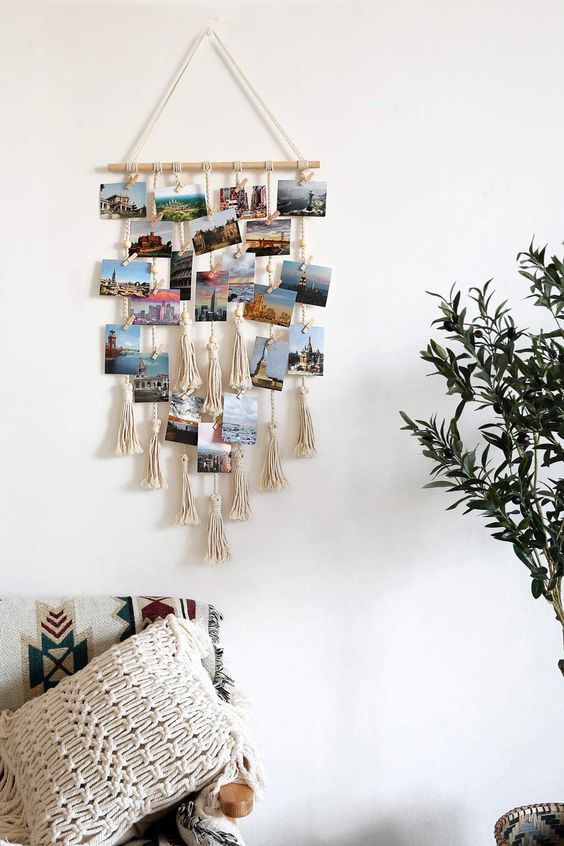 1. แขวนภาพด้วยเชือกถักสไตล์โบโฮชิค