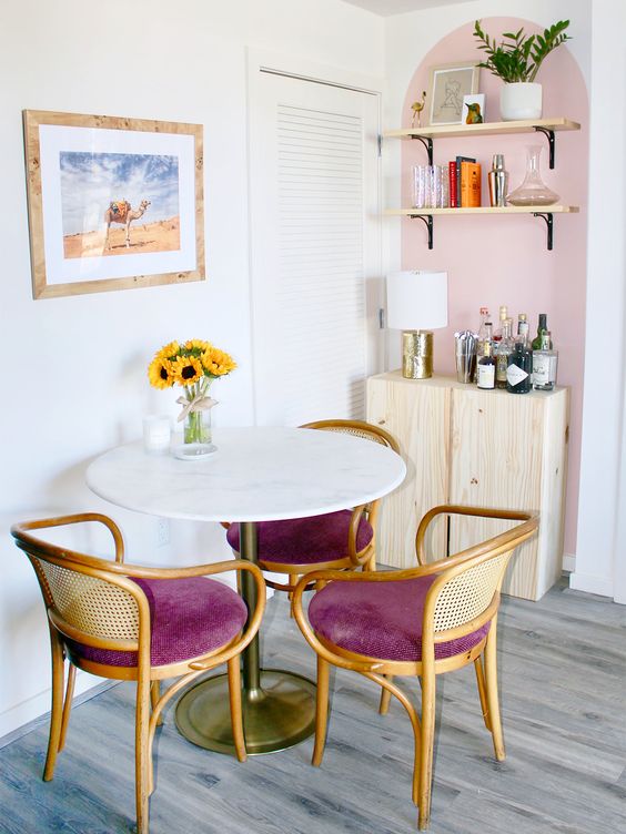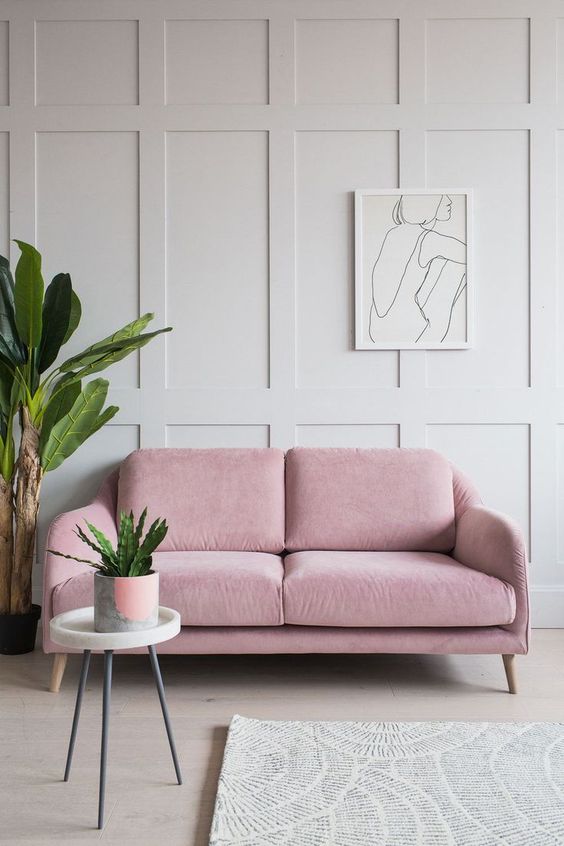 6. ผนังห้องสีขาวแบบเรียบ ๆ ตัดด้วยเฟอร์นิเจอร์สีชมพูหวานแหวว