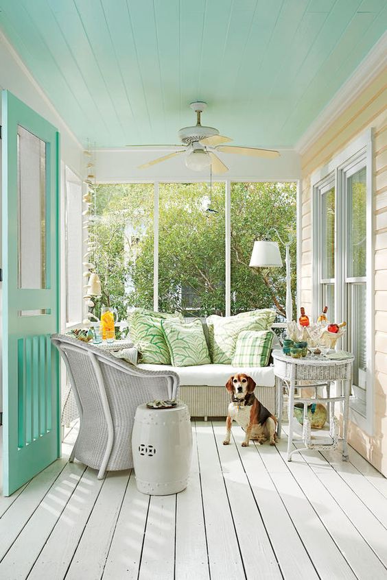 10. เฟอร์นิเจอร์ไม้และเพดานสีเขียวที่เข้ากันสุด ๆ