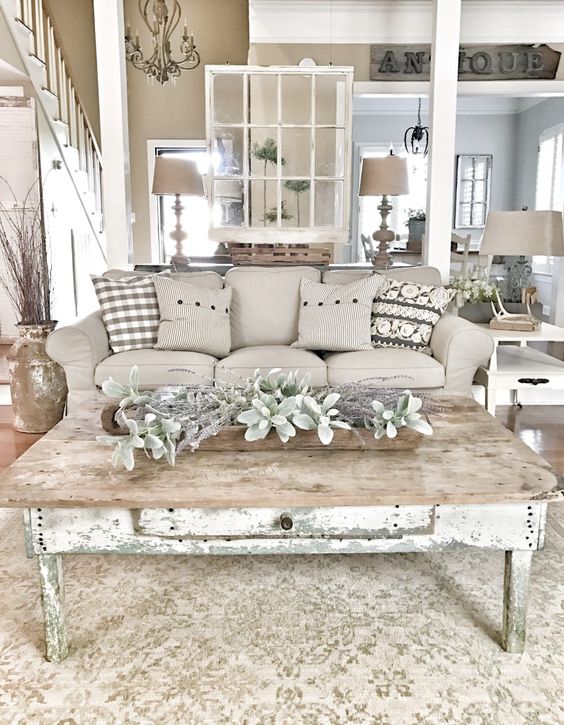 7. ผสานความโมเดิร์นกับรัสติดด้วยตู้ไม้เก่า ๆ กับโต๊ะกาแฟที่ดูทันสมัย