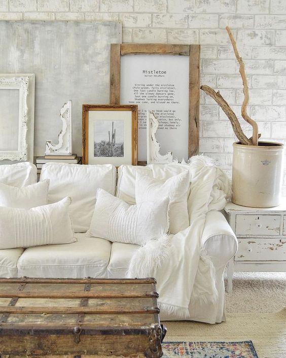 9. ผนังห้องลายอิฐสีขาวครีมที่ทาสีให้ลวดลายเก่า ๆ แบบรัสติก