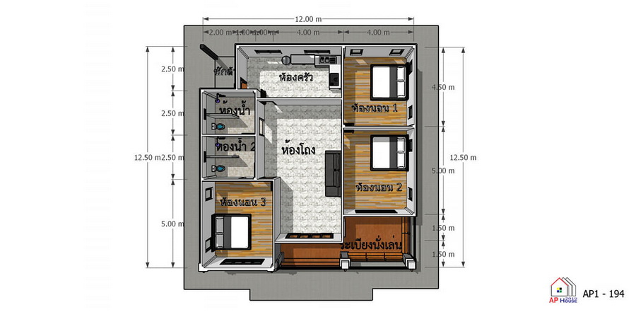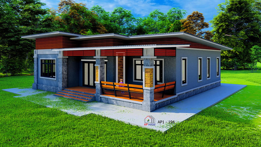 อย่างแบบบ้านหลังนี้จาก เอพี ดีไซน์โฮม เป็นบ้านอีกหลังที่สร้างขึ้นตามแนวคิดอย่างที่ได้กล่าวไป เราจึงเห็นการออกแบบบ้านที่จะมีพื้นที่ใช้สอยที่กว้าง โดยเฉพาะด้านนอกที่มีพื้นที่เฉลียงกว้างพร้อมกับมีม้านั่งแบบมีพนักพิงที่สามารถทำกิจกรรมนอกบ้านได้อย่างจุใจเลย