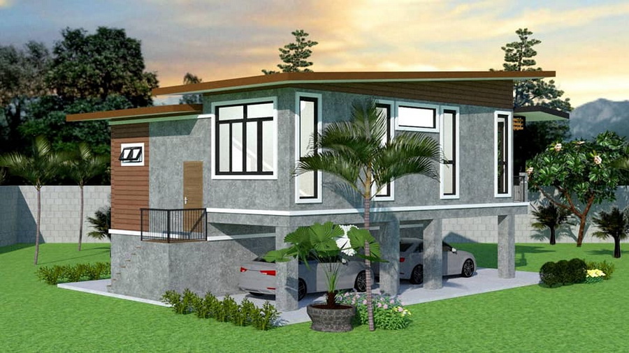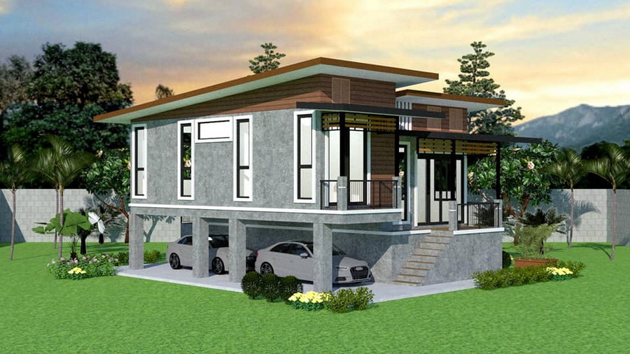หนึ่งในการออกแบบที่เป็นเอกลักษณ์ของบ้านหลังนี้ คือ ใต้ถุนของบ้านที่ถูกยกขึ้นสูง จึงสามารถใช้เป้นที่สำหรับจอดรถได้อย่างสะดวก หรือจะใช้เป็นที่สำหรับทำกิจกรรมก็ทำได้อย่างสะดวก