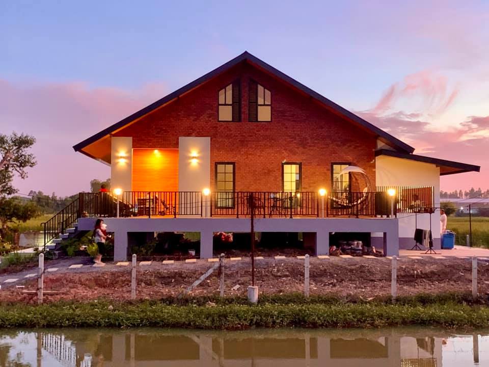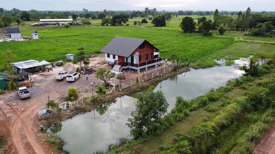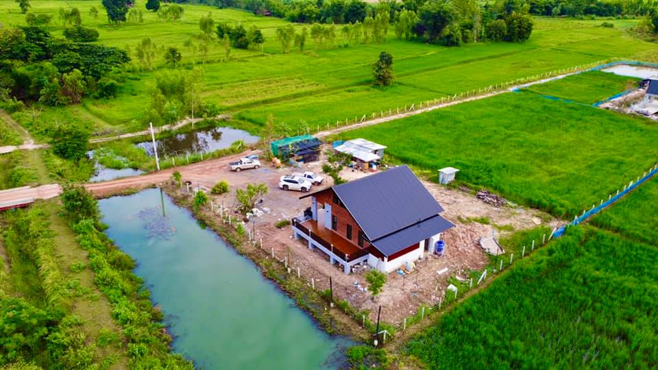 ตัวบ้านหลังใหญ่ที่ห้อมล้อมด้วยทุ่งนาเขียวขจี
