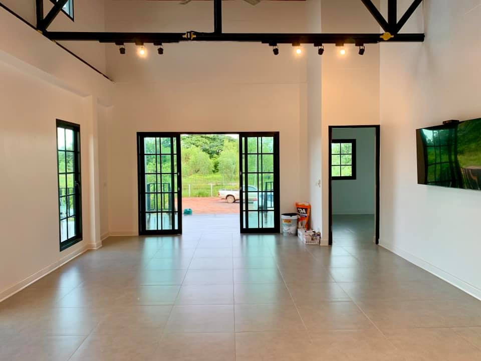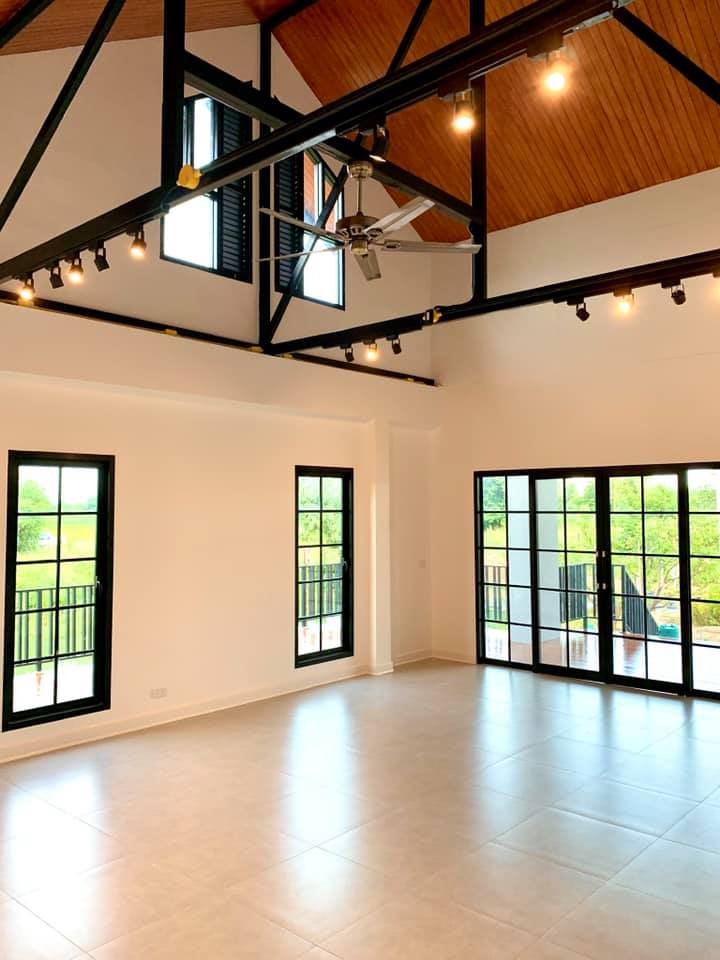 งานออกแบบประตูและหน้าต่างของบ้านหลังนี้จะเป็นลักษณะกรอบสีดำ พร้อมกับมีโครงอยู่ด้านใน ให้บรรยากาศแบบบ้านแนวยุโรป