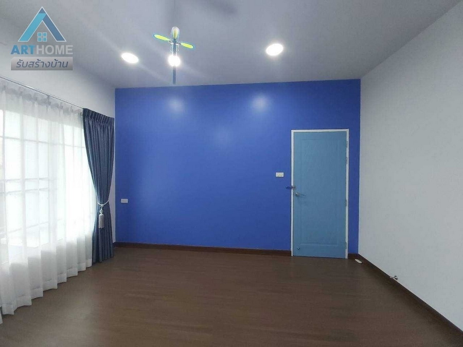 ภายในห้องนอนถูกตกแต่งอย่างเรียบง่าย เน้นบรรยากาศที่ดูสงบ โดยมีผนังห้องโทนสีน้ำเงินโดดเด่นสะดุดตา โดยภายในห้องก็มีพื้นที่มากพอที่จะจัด หรือตกแต่งได้อย่างหลากหลาย