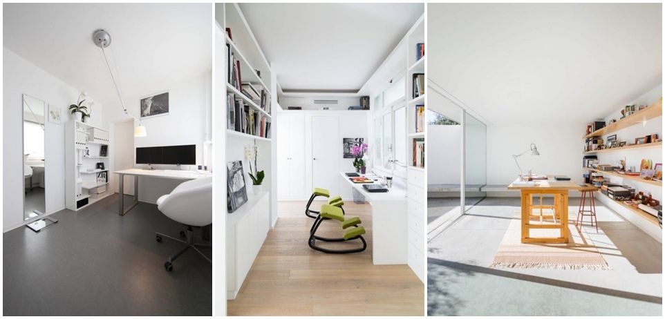 หรือถ้ามีพื้นที่น้อย ก็บิวท์อินโต๊ะทำงาน ชั้นวางของ ไปตามแนวผนังก็ได้ ประหยัดพื้นที่มากขึ้น