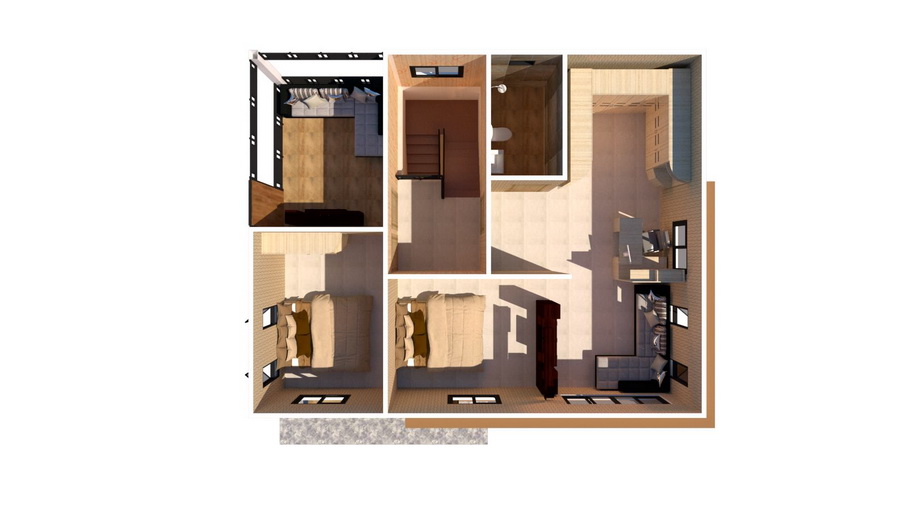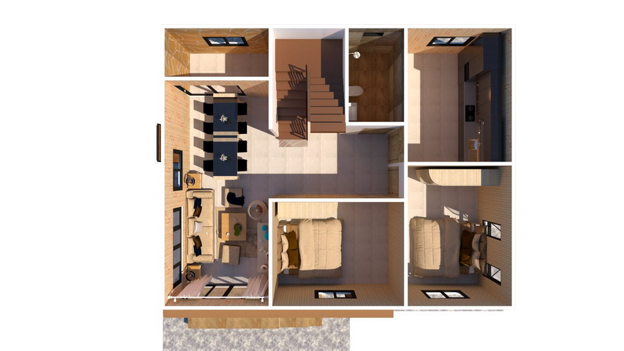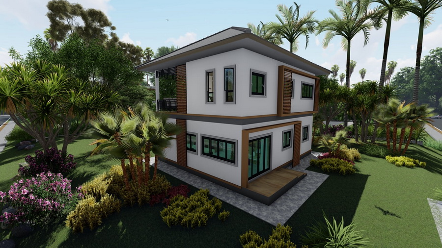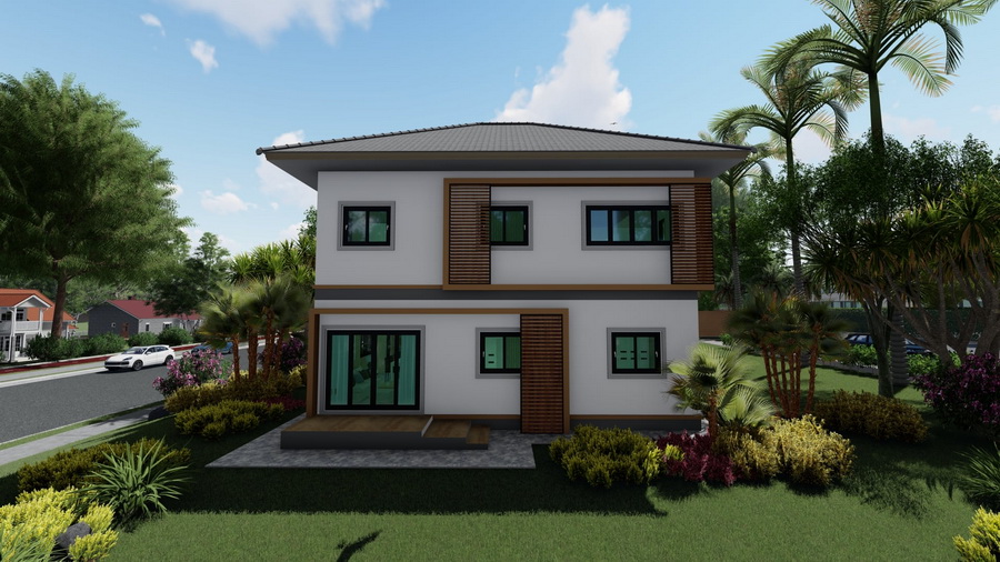 แบบบ้านสองชั้นแนวครอบครัว ดีไซน์สไตล์คอนเทมโพรารี 4 ห้องนอน 2 ห้องนอน พื้นที่ประมาณ 160 ตร.ม.