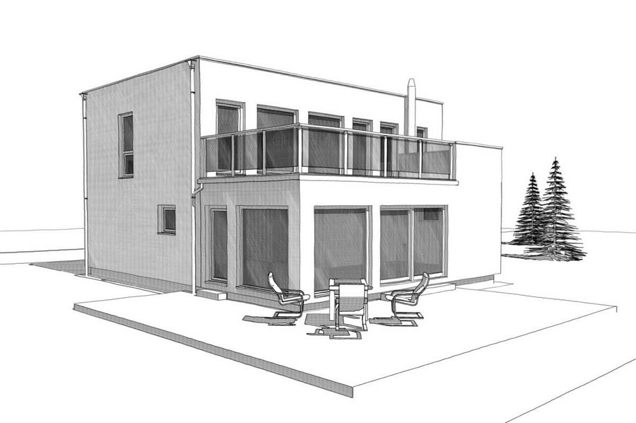 ภาพแบบสเก็ตของบ้านโมเดิร์นหลังนี้