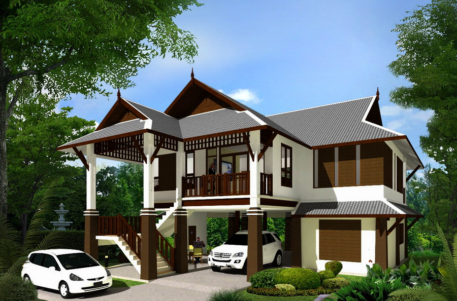 แบบบ้านทรงไทยประยุกต์ ผลงานการออกแบบโดยทีมสถาปนิกจาก บ้านป่าตาล บ้านที่มีเอกลักษณ์และการตกแต่งที่รับอิทธิพลมาจากบ้านทรงไทยดั้งเดิม ผสานการออกแบบและโครงสร้างบ้านแบบทันสมัย จึงให้ความแข็งแรงมั่นคงที่ผสานความสวยงามได้อย่างลงตัว