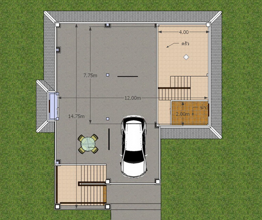 บริเวณทางเข้าหน้าบ้านจะมีบันไดที่ออกแบบมีชานบันได พร้อมกับพาเราไปยังระเบียงหน้าบ้าน ซึ่งทั้งสองบริเวณสามารถตกแต่งและจัดให้เป้นพื้นที่พักผ่อนขนาดพอเหมาะได้อย่างเหมาะสม