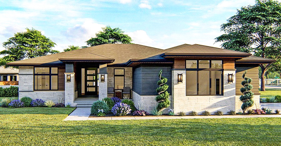 แบบบ้านสไตล์คอนเทมโพรารี ดีไซน์หลังคาทรงปั้นหยา 3 ห้องนอน 2 ห้องน้ำ พื้นที่ใช้สอย 168 ตร.ม.