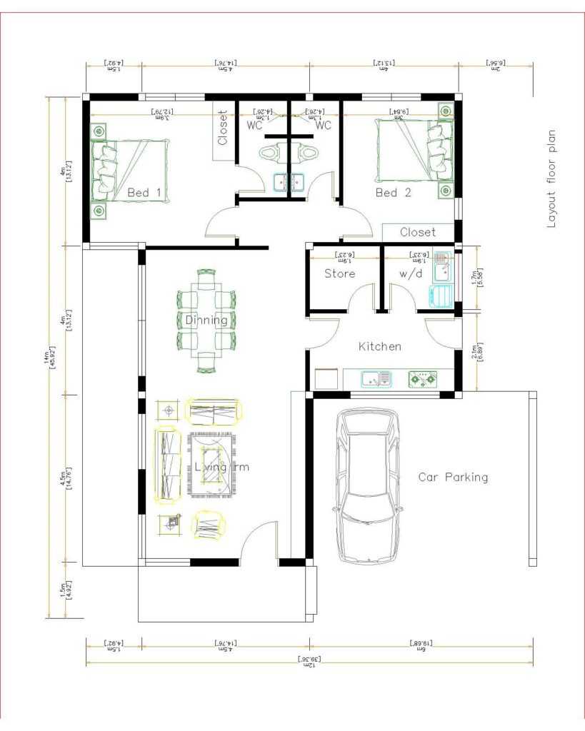 แบบบ้านหลังนี้ประกอบไปด้วย 2 ห้องนอน 2 ห้องน้ำ 1 ห้องโถงนั่งเล่น 1 ส่วนทานอาหาร 1 ห้องครัว พร้อมที่จอดรถ รองรับรถยนต์ 2 คัน บนพื้นที่ใช้สอย 168 ตารางเมตร