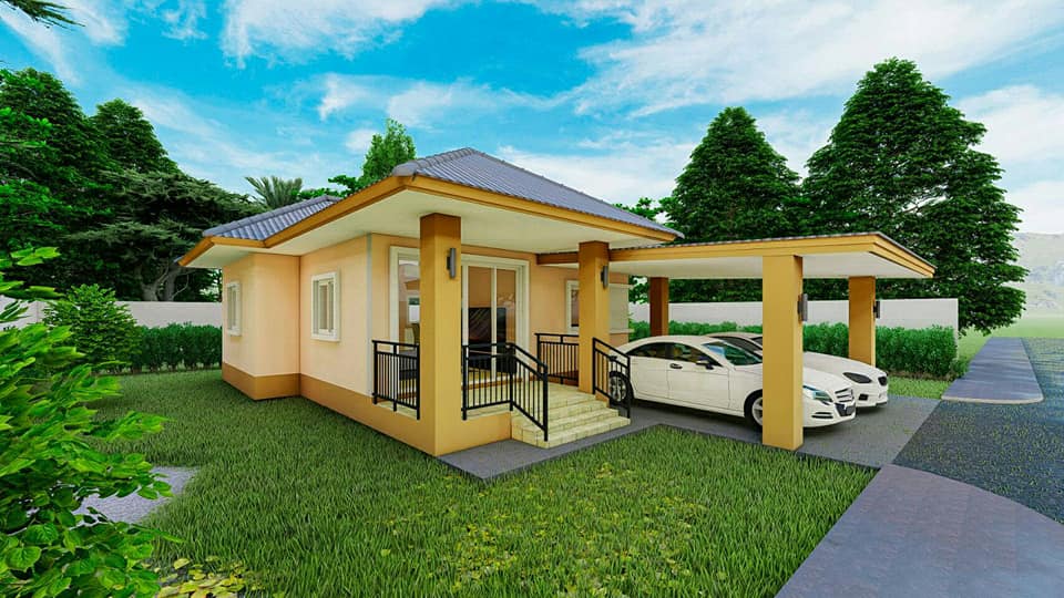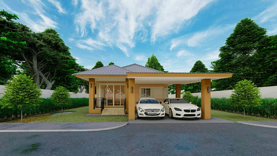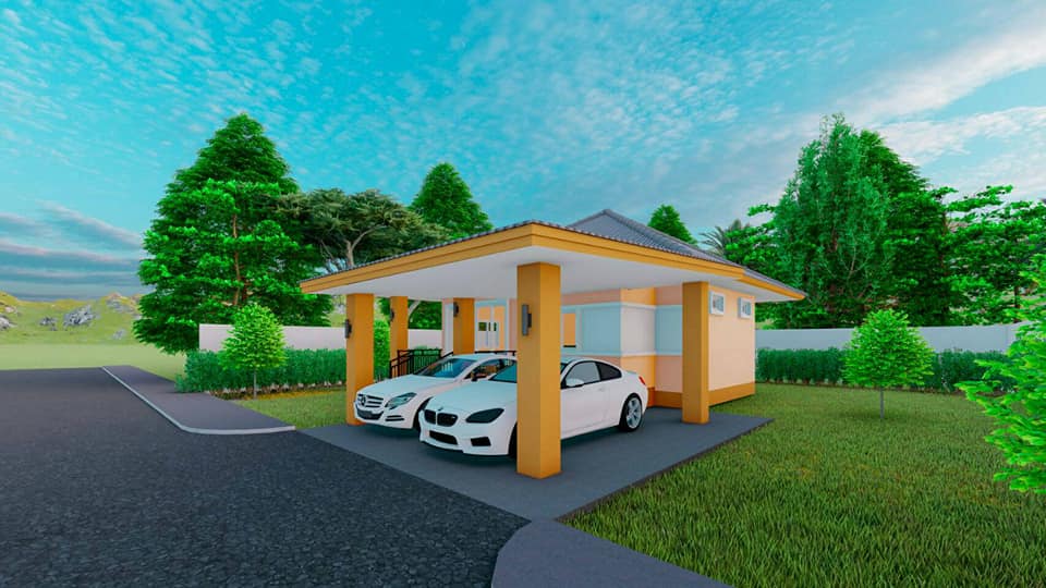 แบบบ้านหลังนี้เป็นบ้านชั้นเดียวที่ถูกออกแบบด้วยสไตล์คอนเทมโพรารี จึงมีรูปลักษณ์ที่โฉบเฉี่ยวทันสมัย มีงานหลังคาเป็นแบบทรงปั้นหยาที่ถูกมุงด้วยกระเบื้องลอนสีเข้ม ในขณะที่โทนสีหลักของบ้านจะออกโทนสีเหลืองมัสตาร์ด ซึ่งให้ความสวยงามอบอุ่นได้ไม่น้อยเลย