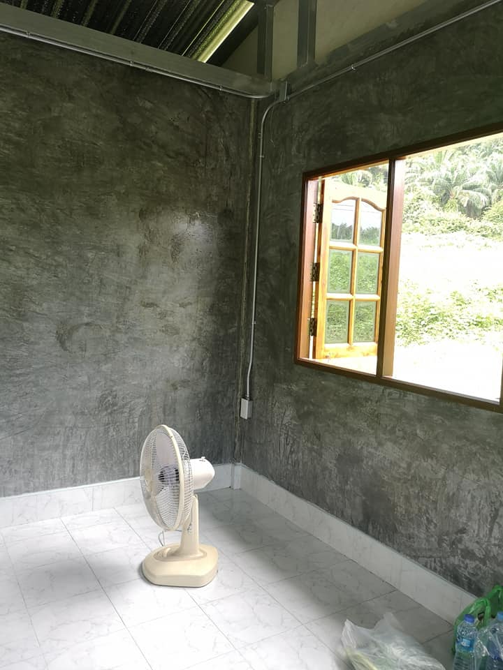 สำหรับบ้านสไตล์โมเดิร์นปูนเปลือยหลังนี้ประกอบไปด้วยห้องโถงใหญ่และห้องน้ำ มีขนาดกว้าง 4 เมตร ยาว 7 เมตร งบก่อสร้างอยู่ที่ 170,000 บาท