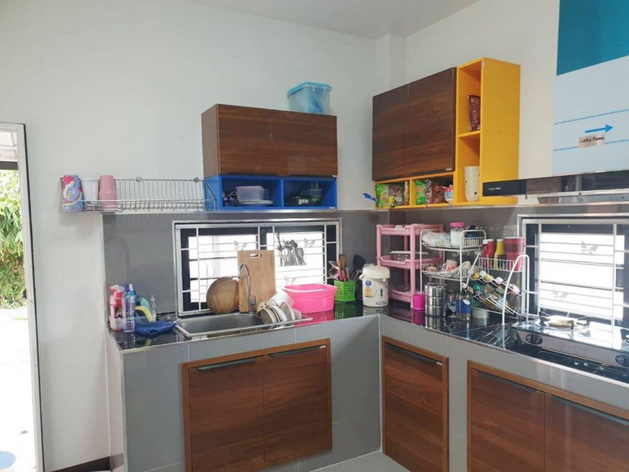 และทางด้านห้องครัว เราก็จะเห็นได้ว่าเป้นครัวแบบง่ายๆ ที่มีเคาน์เตอร์ครัว และสิ่งอำนวยความสะดวกพื้นฐานที่เรียบง่ายใช้งานง่าย