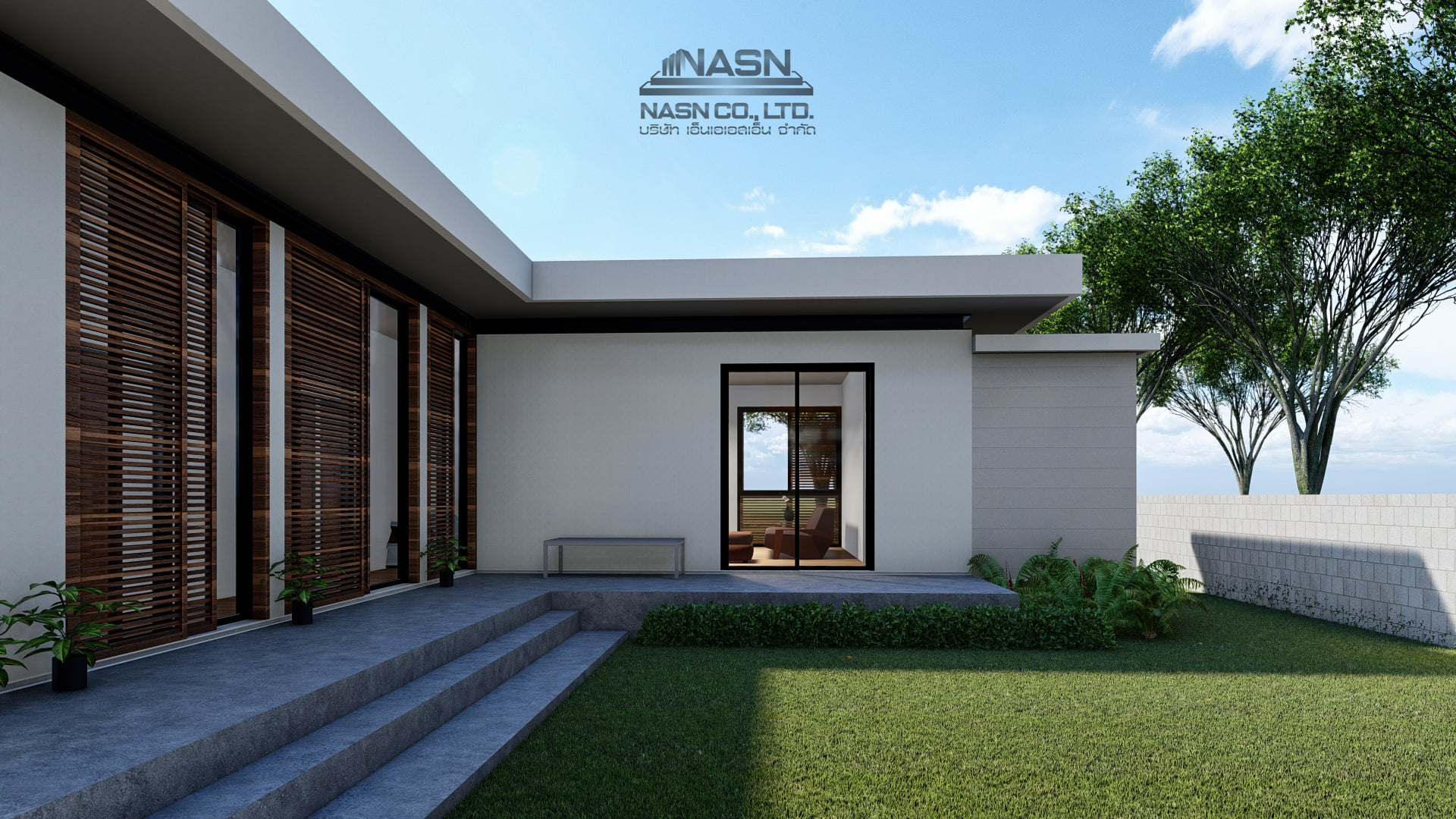 แบบบ้านสไตล์คอนเทมโพรารี ผลงานการออกแบบโดย NASN สถาปนิกจากจังหวัดเชียงใหม่ บ้านขนาดกลางสำหรับครอบครัวขนาดกลาง มีพื้นที่และฟังก์ชันการใช้งานที่ครอบคลุมและครบครัน พร้อมกับมีพื้นที่พักผ่อนหลังบ้านเป็นสวนและสนามหญ้า
