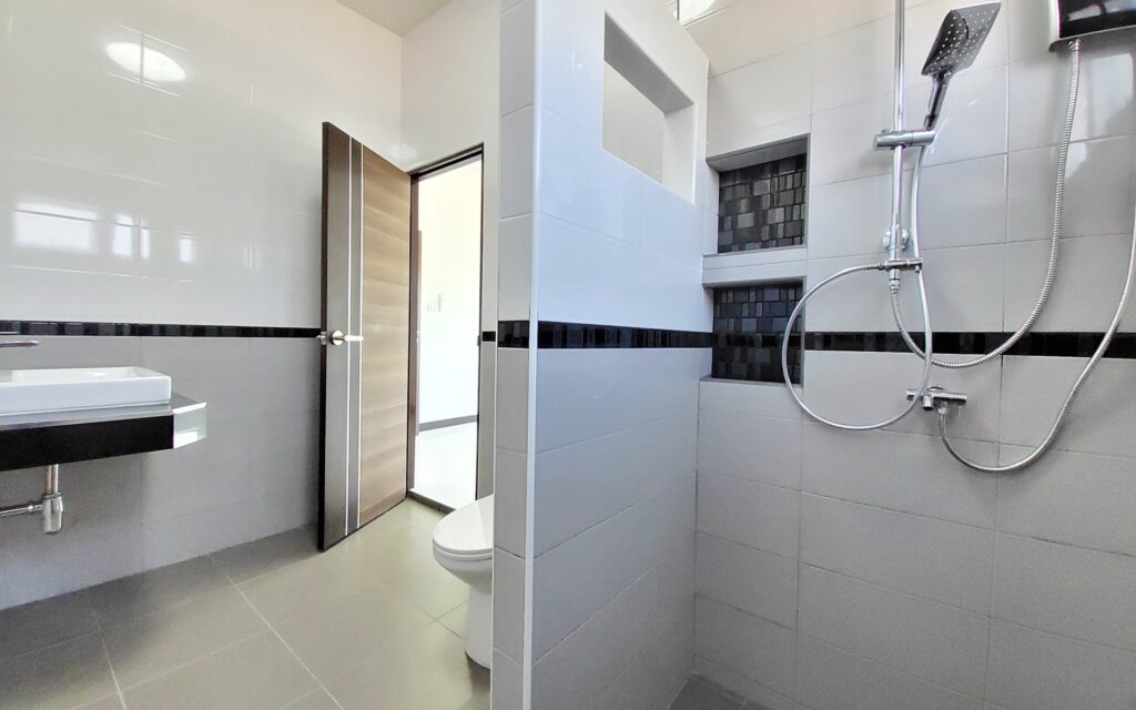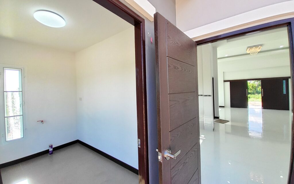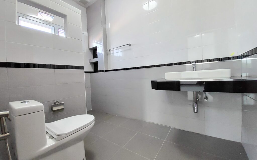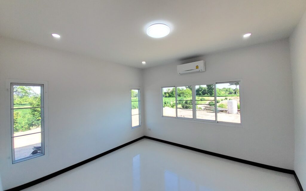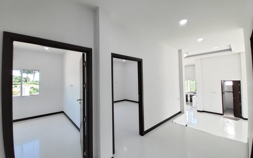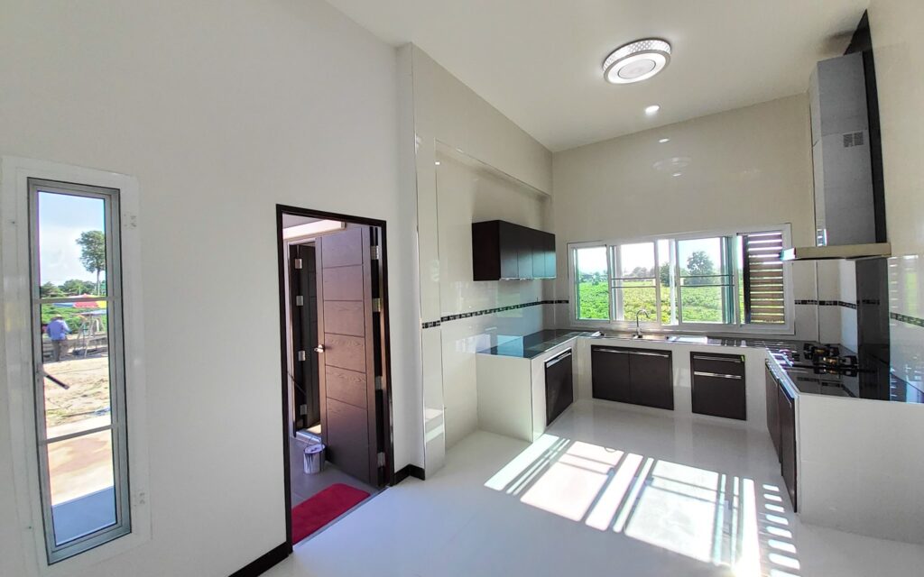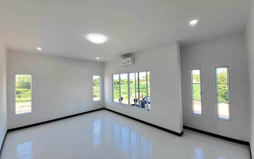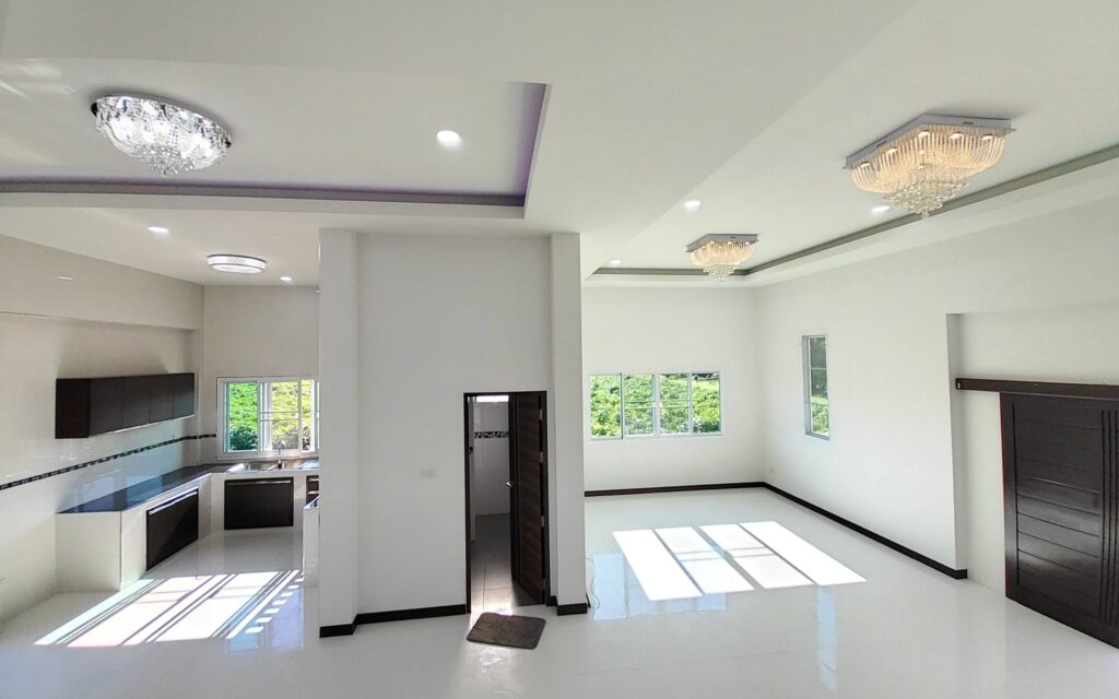 แบบบ้านชั้นเดียวสไตล์โมเดิร์นทรอปิคอล โทนสีเทาอมฟ้า 3 ห้องนอน 2 ห้องน้ำ พื้นที่ 175 ตร.ม.