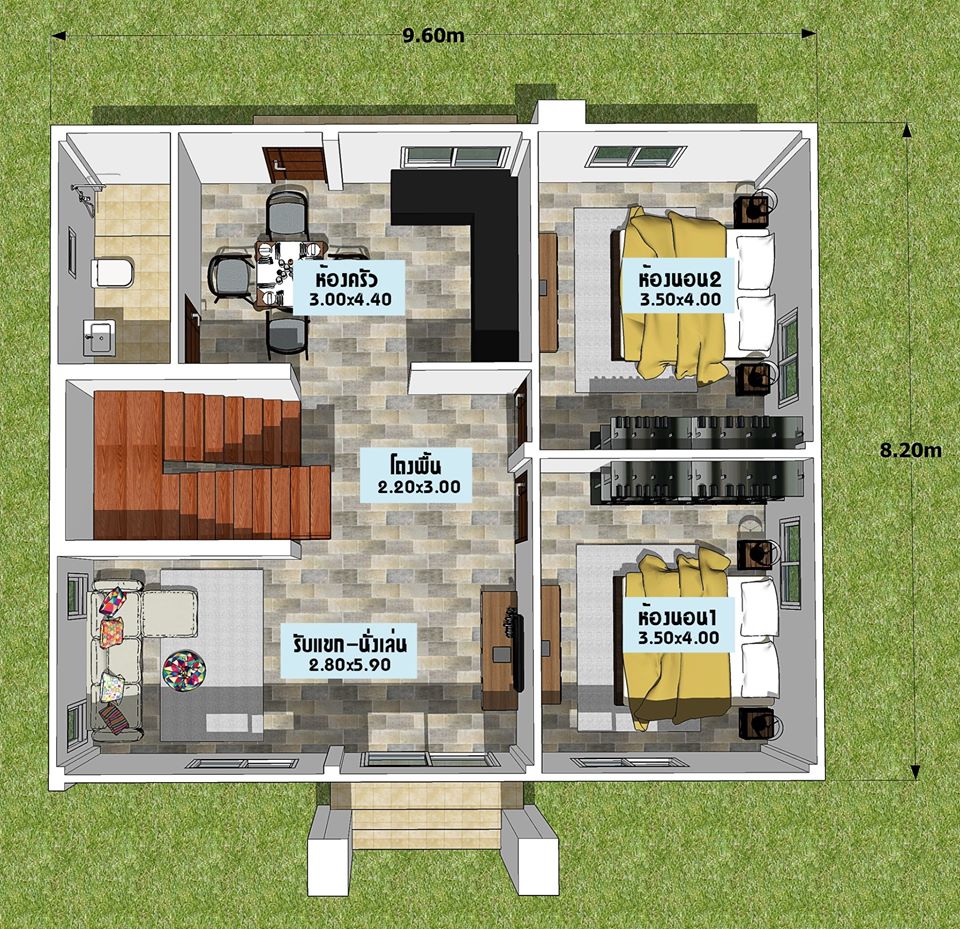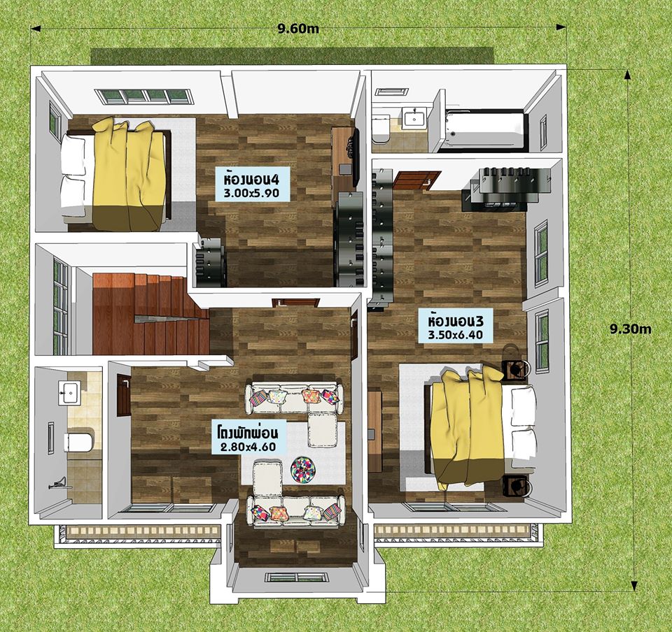 แบบบ้านหลังนี้ประกอบไปด้วย 4 ห้องนอน 3 ห้องน้ำ 1 ห้องพักผ่อนชั้นบน 1 ห้องรับแขก+นั่งเล่น 1 ห้องครัว+รับประทานอาหาร พื้นที่ใช้สอย 175 ตร.ม. งบประมาณ 1.84 ล้านบาท ต้องการที่ดินขนาด กว้าง 14 เมตร ยาว 15 เมตร ขึ้นไปครับ