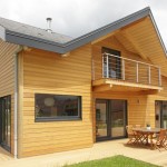 ตัวบ้านภายนอกก็จะดูเป็นทรงสี่เหลี่ยม หลังคาแบบเพิงหมาแหงนลาดเอียงดูมีดีไซน์ ด้านข้างใช้แผ่นเมทัลชีทมาบุให้ดูเป็นเอกลักษณ์ สีตัดกันกับสีน้ำตาลของไม้ ที่เป็นทั้งระเบียงและกันสาด พร้อมหน้าต่างรอบทิศ