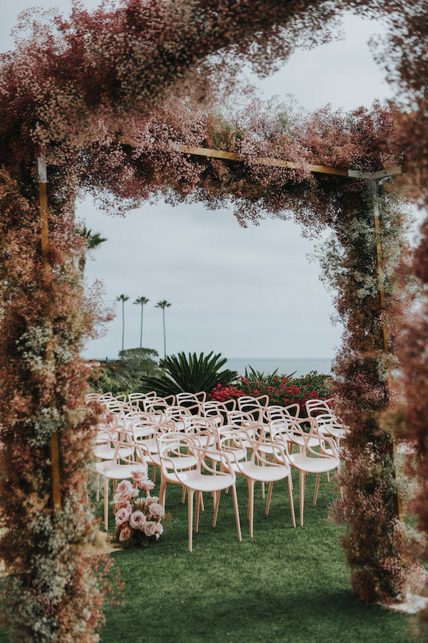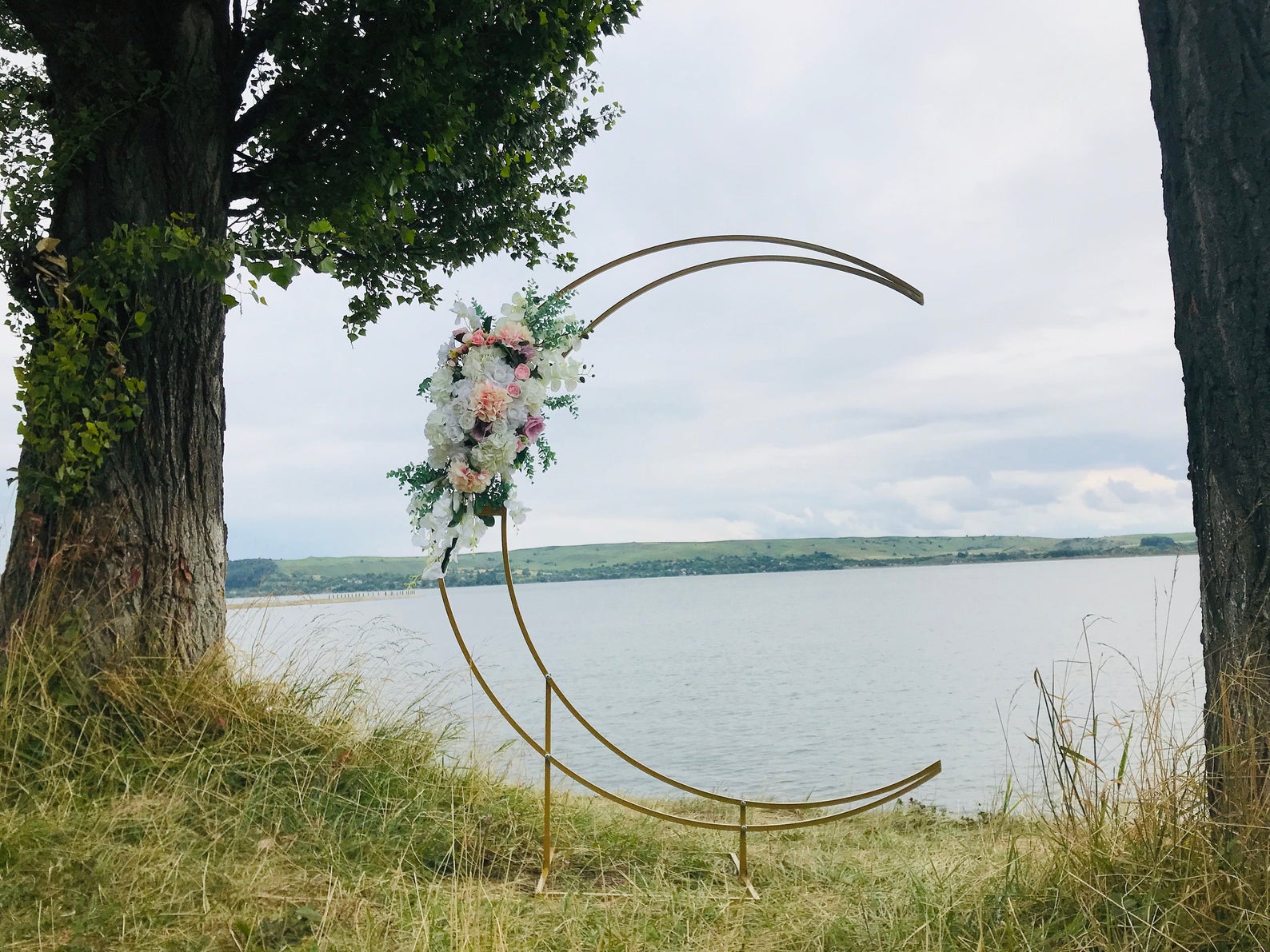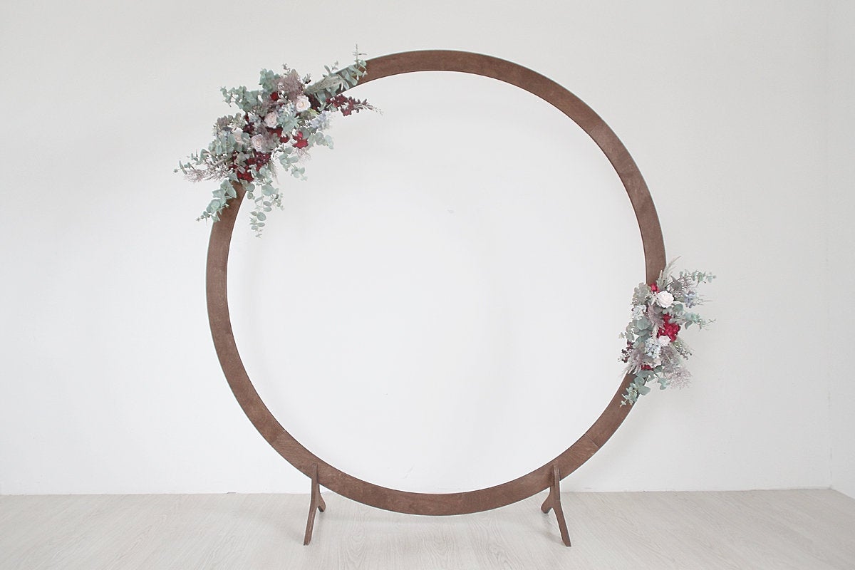 ซุ้มรูปวงกลมมีดีไซน์ที่สวยงาม สามารถตกแต่งด้วยดอกไม้หรือของตกแต่งอื่น ๆ ในโดยรอบ จึงเป้นอีกหนึ่งซุ้มถ่ายภาพที่จะช่วยให้งานแต่งงานดูมีสีสันมากขึ้น