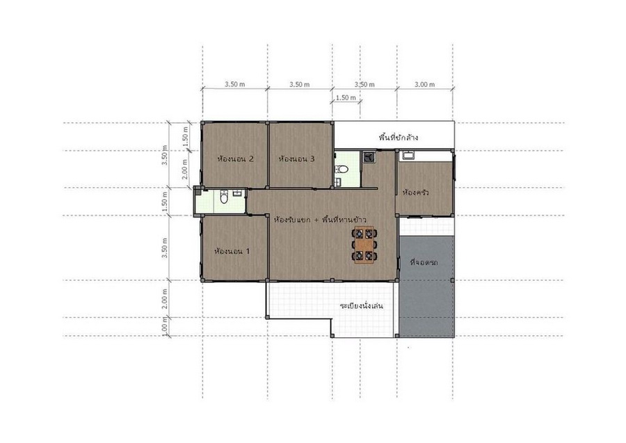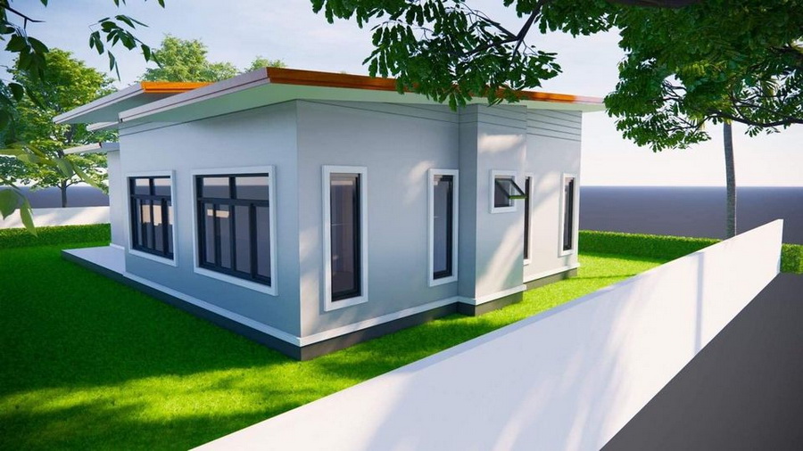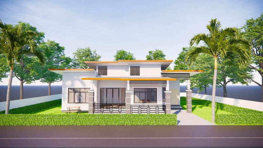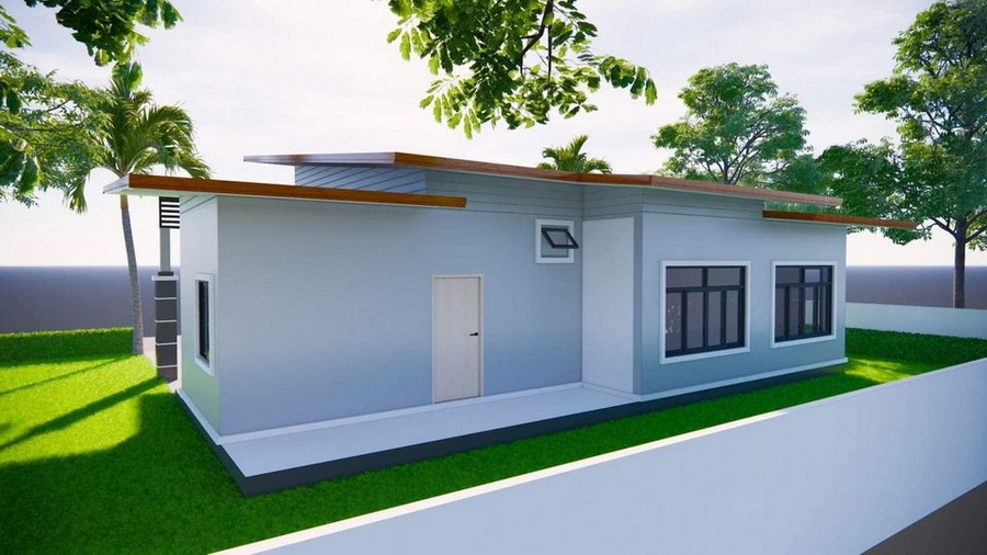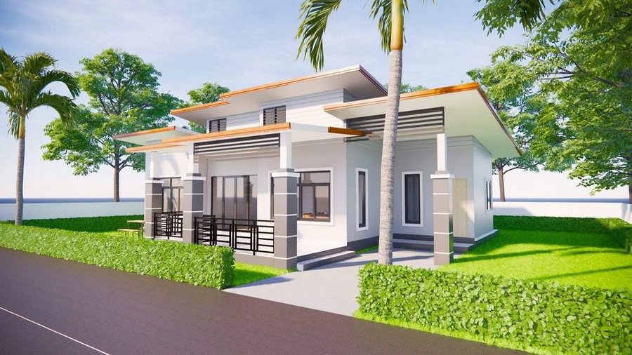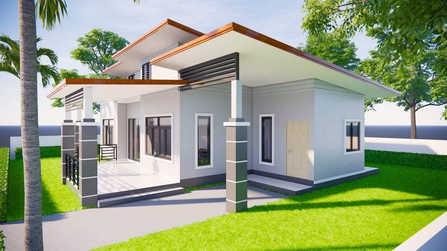 แบบบ้านสไตล์โมเดิร์น ดีไซน์หลังคาเล่นระดับสวยงาม 3 ห้องนอน 2 ห้องน้ำ พร้อมที่จอดรถ พื้นที่ 180 ตร.ม.