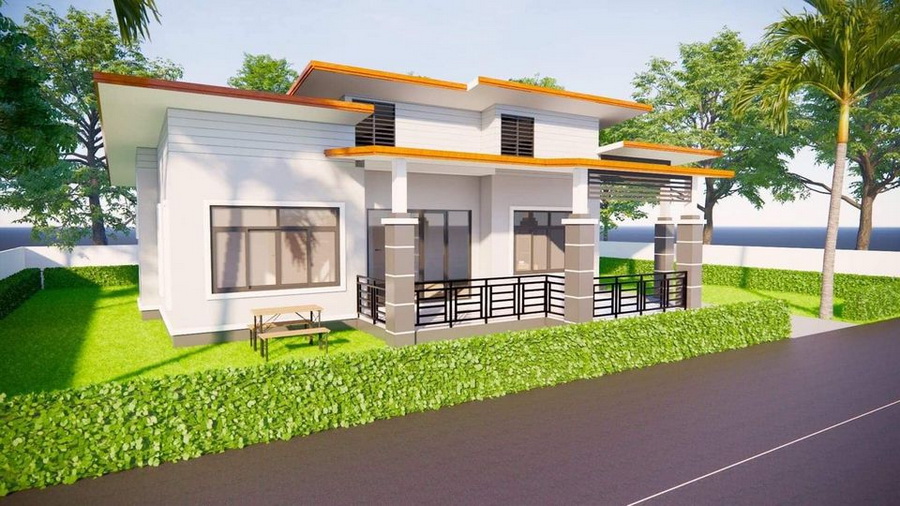 แบบบ้านสไตล์โมเดิร์น ดีไซน์หลังคาเล่นระดับสวยงาม 3 ห้องนอน 2 ห้องน้ำ พร้อมที่จอดรถ พื้นที่ 180 ตร.ม.