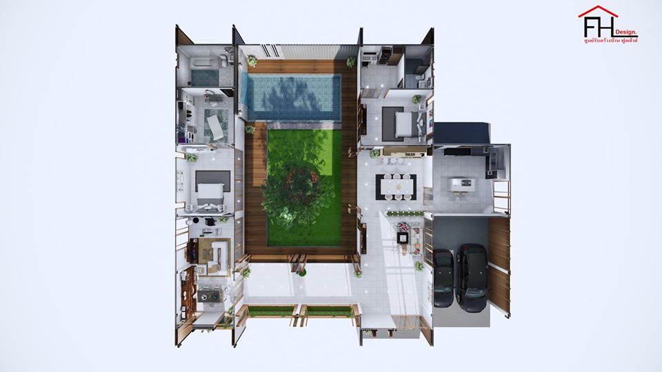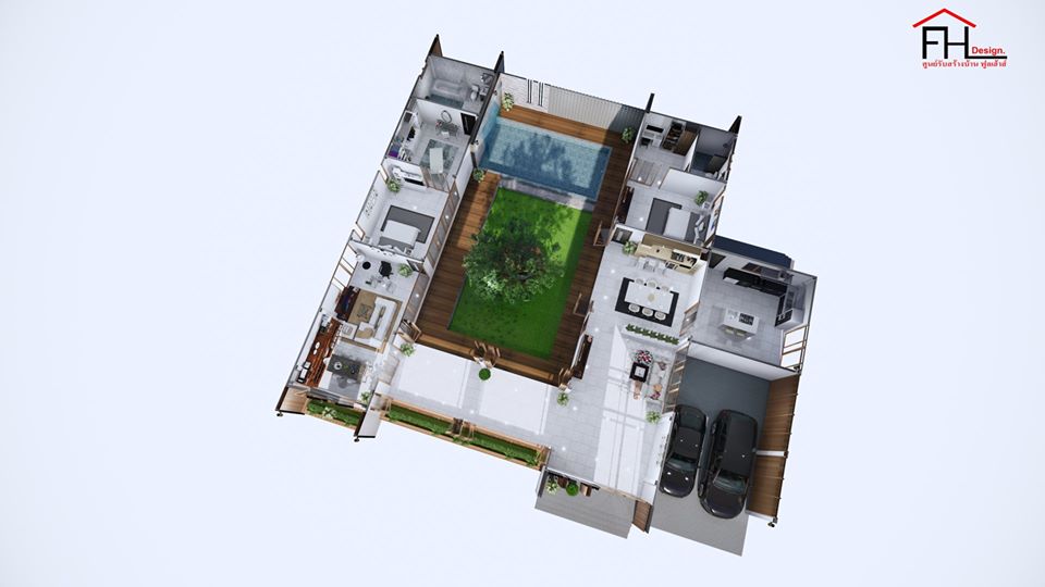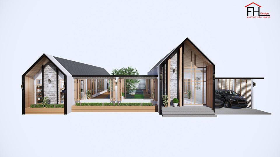 แบบบ้านสไตล์โมเดิร์นนอร์ดิก ผลงานการออกแบบโดยทีมงาน ศูนย์รับสร้างบ้าน FULL HOUSE Design ความโดดเด่นของบ้านหลังนี้คือการจัดสรรพื้นที่ธรรมชาติไว้ตรงใจกลางบ้าน ในขณะที่ฟังก์ชันการใช้ชีวิตต่าง ๆ ถูกวางไว้โดยรอบ ให้ผู้อยู่อาศัยสัมผัสกับธรรมชาติเสมือนเป็นส่วนหนึ่งของกันและกันตั้งแต่ตื่นเช้าจนก่อนเข้านอนกันเลยทีเดียว