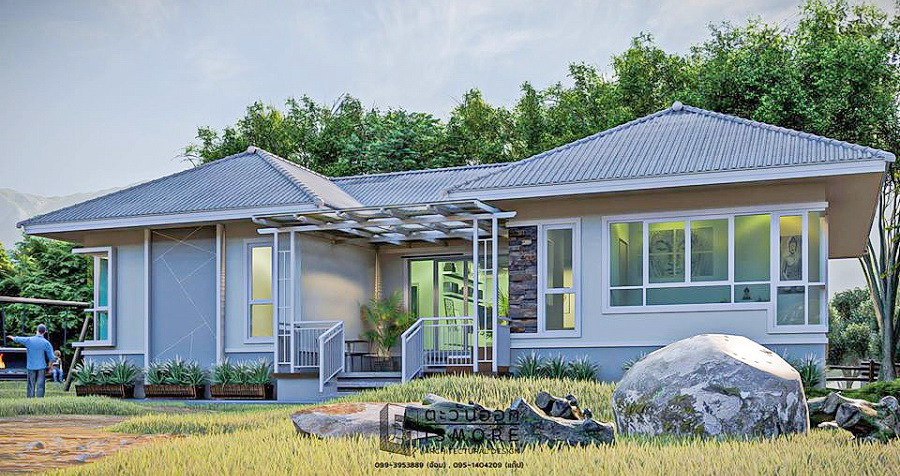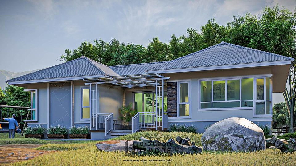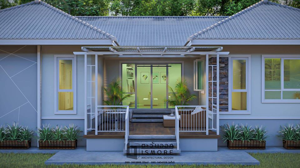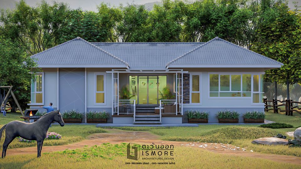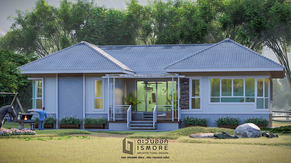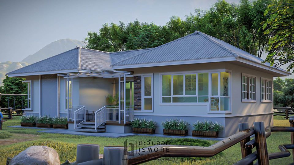 แบบบ้านปั้นหยาทรงหน้ากว้าง ผลงานการออกแบบโดยทีมงาน Is More ArchitecturalDsign บ้านสวยดีไซน์อบอุ่น ตกแต่งแบบเรียบง่าย บรรยากาศเหมือนบ้านสวนชวนพักผ่อน เหมาะสำหรับที่ดินหน้ากว้างครับ ตามมาชมรายละเอียดกันเลย