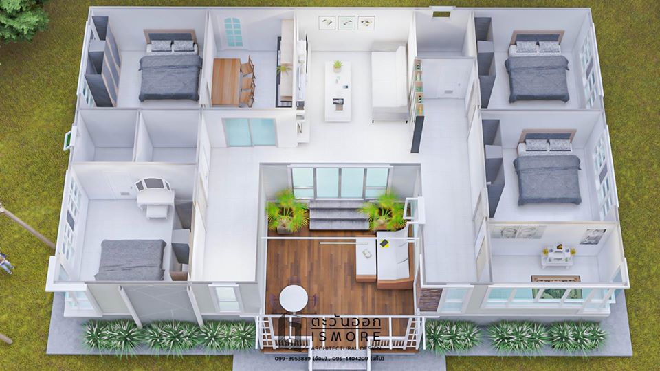 แบบบ้านหลังนี้ประกอบไปด้วย 4 ห้องนอน 3 ห้องน้ำ 1 ห้องครัว 1 ห้องพระ 1 ห้องรับรองแขก 1 เฉลียงรับรองแขกด้านนอก บนพื้นที่ใช้สอย 180 ตารางเมตร (กว้าง 17.20 เมตร ลึก 10 เมตร) หากเพื่อน ๆ ชาวเว็บต้องการข้อมูลเพิ่มเติมเกี่ยวแบบแปลนฉบับนี้ สามารถสอบถามผู้ออกแบบโดยตรงผ่านช่องทางติดต่อด้านล่างนี้เลยนะครับ