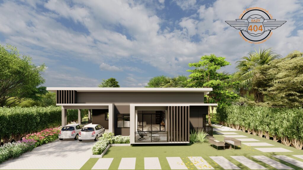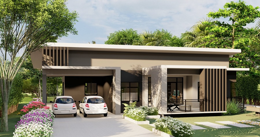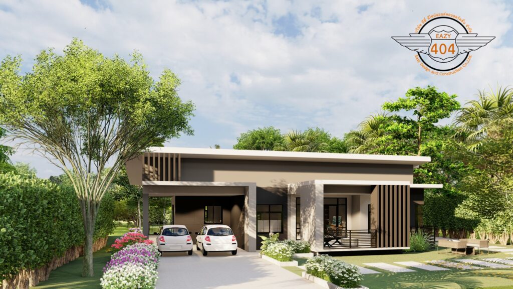 แบบบ้านชั้นเดียวสไตล์โมเดิร์นหลังคาสแลป ผลงานการออกแบบโดยทีมงานจากเพจ แบบบ้านสวยพร้อมก่อสร้าง Design&Construction รูปทรงอาคารเรียบเท่ เน้นเส้นสายเรขาคณิต ภายใต้การตกแต่งในโทนสีเข้มขรึม พร้อมกับการออกแบบฟังก์ชันที่โดดเด่นทันสมัย ตามมาชมรายละเอียดกันได้เลยครับ
