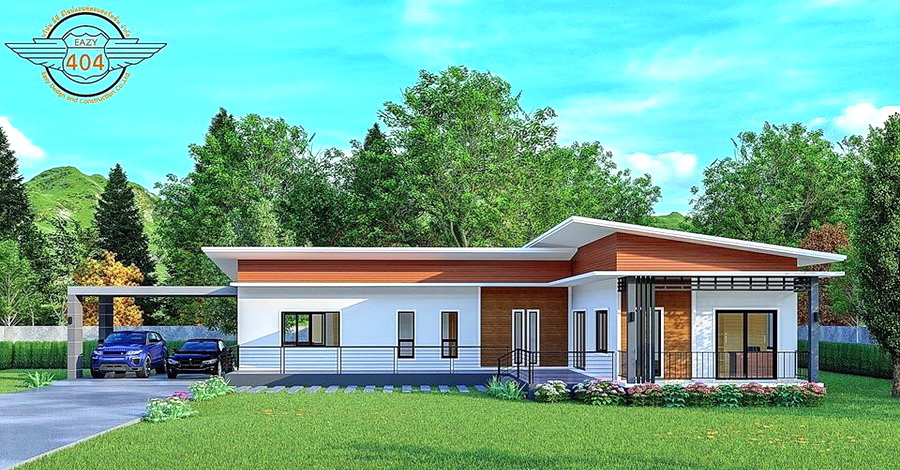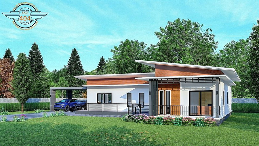 แบบบ้านหน้ากว้างสไตล์โมเดิร์น 3 ห้องนอน 3 ห้องน้ำ พร้อมที่จอดรถ 2 คัน พื้นที่ 187 ตร.ม.
