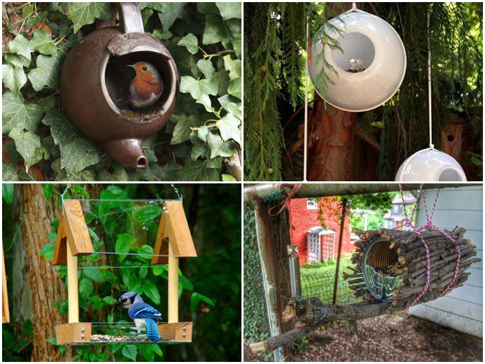 ตกแต่งด้วยของใช้เก่า นำไปรีไซเคิลเป็นบ้านนก เช่น ขวดโหล แจกัน ตะกร้า กระเช้า เป็นต้น