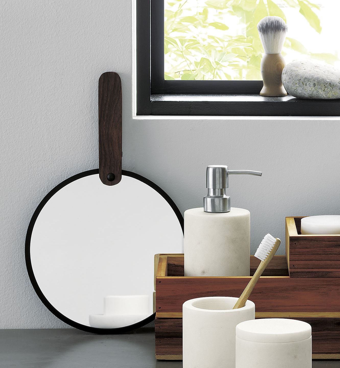 กระจกมือถือเป็นกระจกเงาแบบง่าย ๆ ที่มักจะมีรูปทรงกลมเป็นหลัก อาจจะมีรูปทรงอื่น ๆ เช่น ทรงสี่เหลี่ยม หรือทรงสามเหลี่ยมบ้าง กระจกแบบนี้จะมีมือจับที่เหมาะกับการเลือกมือจับที่มีดีไซน์สวย ๆ ให้เหมาะกับการตกแต่งบ้าน