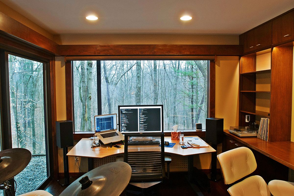 การทำงานภายในบ้านย่อมจะหลีกเลี่ยงไม่ได้ที่จะต้องพบกับสมาชิกภายในบ้าน โดยเฉพาะเด็ก ๆ ที่อาจจะเข้ามาใช้พื้นที่เดียวกับคุณ ดังนั้น การออกแบบพื้นที่ทำงาน จำเป็นจะต้องคำนึงถึงพื้นที่ส่วนรวมในบ้านด้วย โดยอาจจะลองเลี่ยงออกมาจัดมุมให้ไกลขึ้นหน่อย