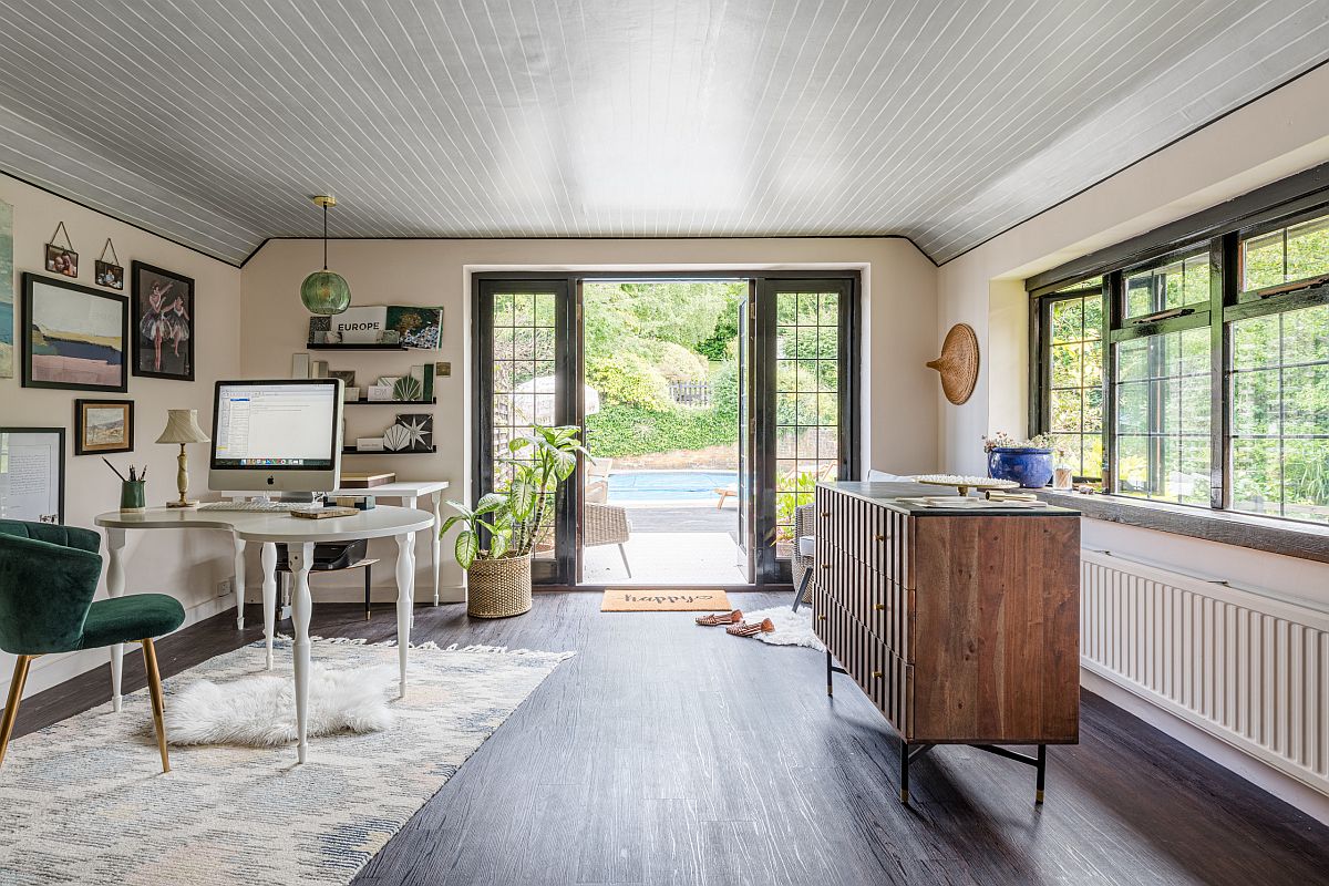 ถ้าหากภายในบ้านไม่สามารถตอบโจทย์ความต้องการในการทำงานได้ อาจจะลองออกมาจัดหรือสร้างห้องทำงานภายนอกตัวบ้านเพื่อความสงบ ก็เป็นอีกไอเดียที่น่าสนใจ