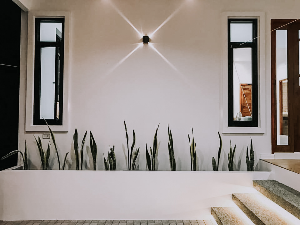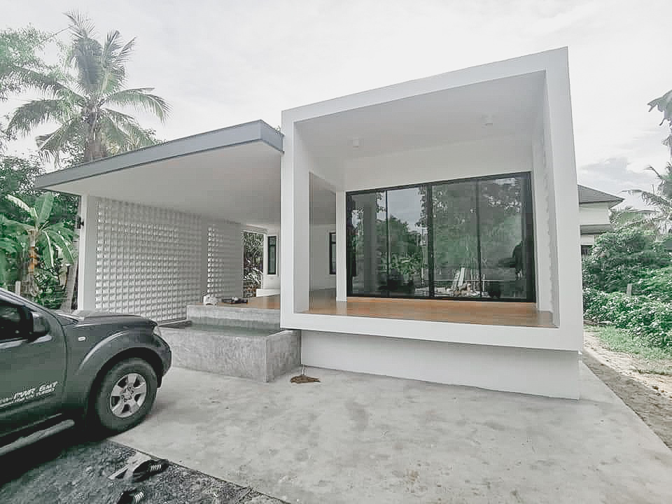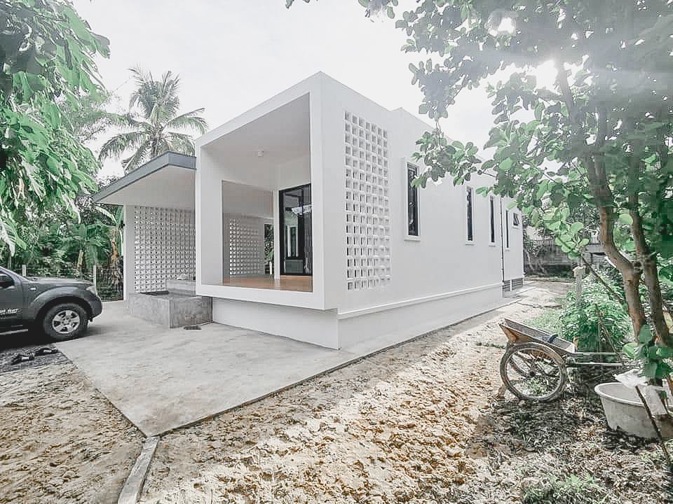 ลักษณะบ้านขนาดชั้นเดียว ตัวบ้านออกแบบในสไตล์โมเดิร์นแบบทรงกล่องสี่เหลี่ยม จึงมีความเรียบง่ายแต่สวยงาม ด้านการตกแต่งนั้น บ้านหลังนี้ถูกตกแต่งในโทนสีขาวทั้งหลัง จึงให้บรรยากาศที่ดูโมเดิร์นและมีกลิ่นอายของความมินิมอลหน่อย ๆ