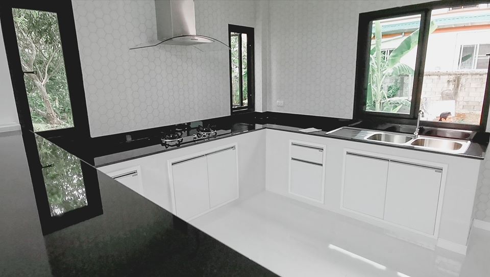 ทางด้านห้องครัวจะมีพื้นที่ใช้สอยมากเป็นพิเศษ จึงเหมาะกับคนชอบทำอาหาร ภายในตกแต่งด้วยเคาน์เตอร์ครัวรูปตัวยู พร้อมกับมีสิ่งอำนวยความสะดวกที่ครบครัน