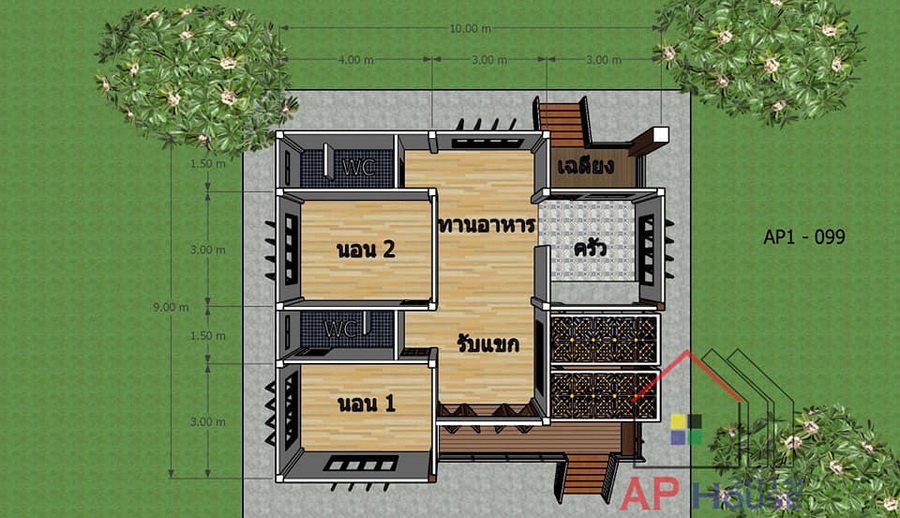 แบบบ้านทรงไทยประยุกต์ประกอบไปด้วย 2 ห้องนอน 2 ห้องน้ำ 1 ห้องโถงนั่งเล่น 1 ห้องครัว 1 ห้องพร้อมเคาน์เตอร์เพื่อการสังสรรค์ เฉลียงหน้าบ้านและหลังบ้าน พื้นที่ใช้สอยทั้งหมดประมาณ 190 ตารางเมตร เพื่อน ๆ สามารถสอบถามข้อมูลเพิ่มเติมได้จากช่องทางติดต่อด้านล่างนี้ได้เลยครับ