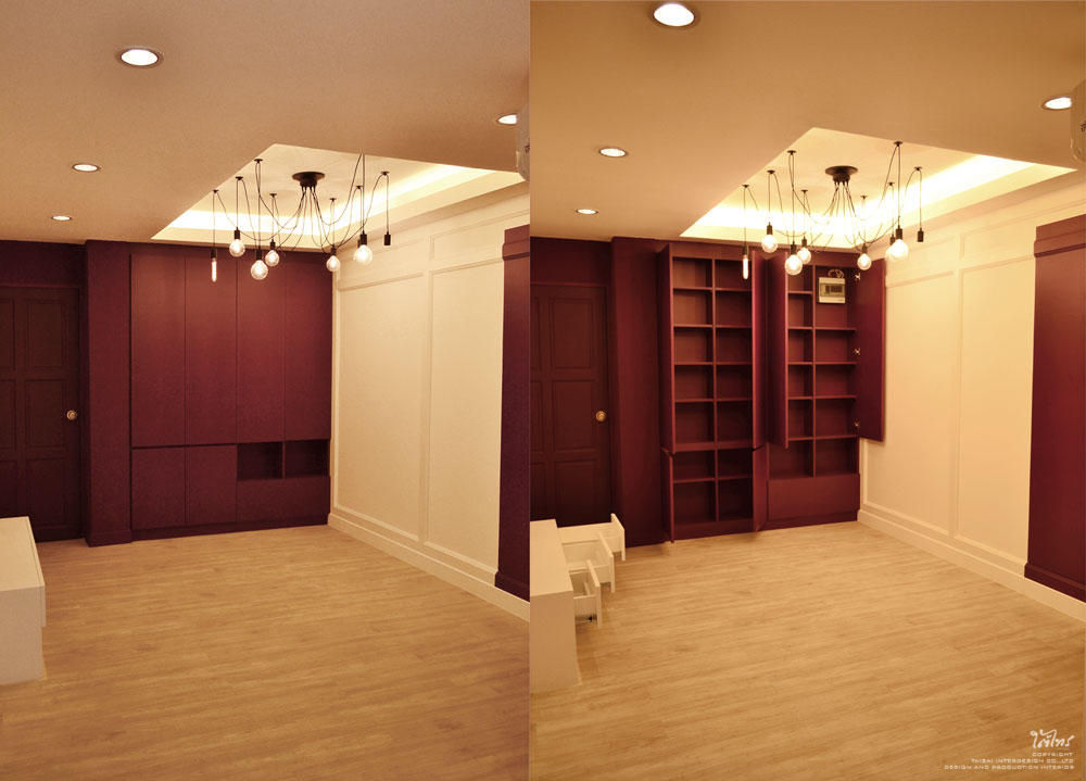 เนื่องจากห้องอนเกประสงค์ผมมีไว้เก็บของและให้น้องหมานอน (เยลโล่วและเยลลี่) จึงมีความจำเป็นต้องเปลี่ยนทิศทางประตูเพื่อสะดวกเมื่อหมาต้องเข้าห้องน้ำจึงกันผนังปิด และ เพิ่มประตู โดยคุณแม่ขอให้ห้องแม่และห้องน้องหมาสามารถมองเห็นกันแบบทะลุ เพื่อให้แอร์ไปถึงทั้งห้องหมาและห้องคุณแม่ และขอให้ทะลุแบบน้องหมาไม่สามารถเข้ามาห้องคุณแม่ได้ (โอ้ว)