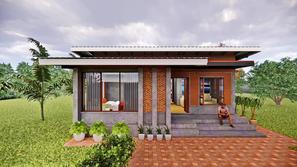 แบบบ้านชั้นเดียวสไตล์โมเดิร์นลอฟท์ ผลงานจากคุณ Aoi Somruedee บ้านหลังเล็กดีไซน์ดิบ เรียบ เท่ ด้วยปูนเปลือยและผนังอิฐโชว์แนว สวยงามมีเอกลักษณ์ตามแบบฉบับบ้านแนวลอฟท์ เข้ากับไลฟ์สไตล์คนรุ่นใหม่ได้อย่างลงตัว