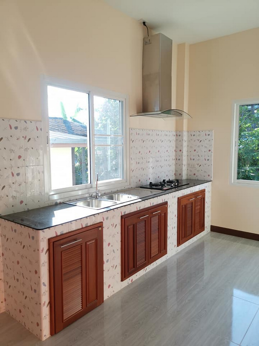 ภายในห้องครัวมีพื้นที่ใช้สอยในขนาดที่พอเหมาะ โปร่งสบายด้วยหน้าต่างบานใหญ่ ภายในครัวถูกติดตั้งด้วยเคาน์เตอร์ครัวแบบติดผนังที่จะช่วยอำนวยความสะดวกได้เป็นอย่างดี